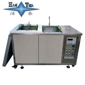 潔泰三槽模具電解超聲波清洗機,電解超聲波系統是由超聲波發生系統,電解電路系統,循環過濾系統,專用模具電解清洗劑和水性防銹劑組成。藍鯨雙槽模具電解超聲波清洗機,第一槽為清洗槽、第二槽為漂洗槽、第三槽為精洗槽。產品適用范圍:1、模具種類:注塑模具、儀表精密模具、連接器模具、精密密封件模具、沖壓模具、成型模具等。2、模具瓦斯氣殘留層,高溫形成的硫化物,防火塑膠殘留物,色粉殘留物,模具表面氧化物,以及各種模具的銹漬,油污等。